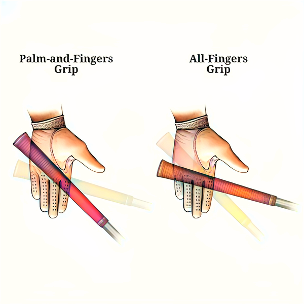 왼손 엄지손가락을 그립에 어떻게 놓느냐에 따라, 그립을 왼손 내부에 위치시키는 두 가지 주요 방법이 존재합니다.