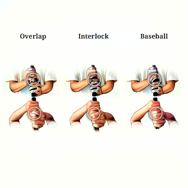 '인터로킹 그립'은 왼손의 검지, 중지 사이에 오른손의 새끼 손가락을 고리로 만드는 방식입니다. 이 그립은 두 손 사이에 아주 강력한 결합력을 제공하며, 오버랩 그립에 대한 좋은 대안이 됩니다.